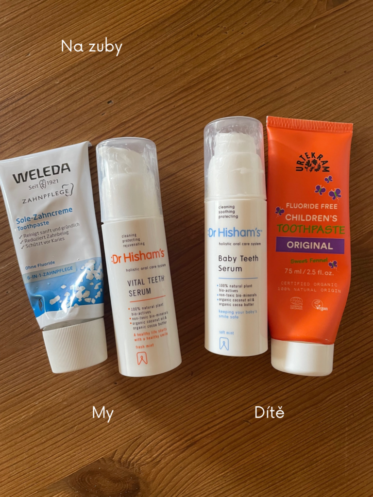 A pak mě napadá, z toho co doma máme, ještě tělové mléko, SPF produkty na léto, mýdlo na ruce a zubní péče.